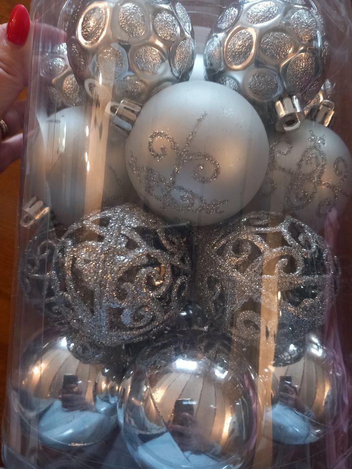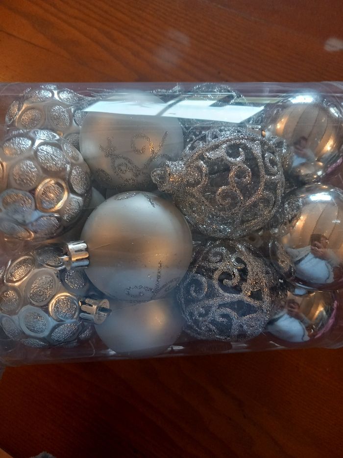 Lot 26 boules de Noël diamètre 6 cm. Argenté