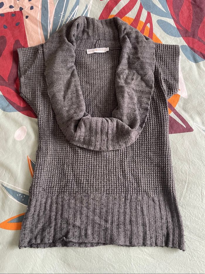 Pull manches courtes avec grand col roulé Couleur gris Marque Cache-cache Taille 1 Légèrement bouloché