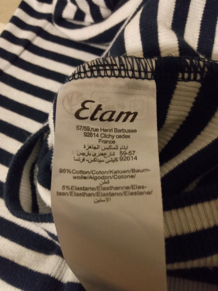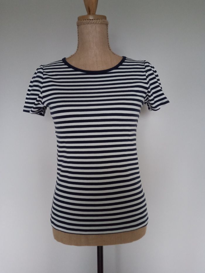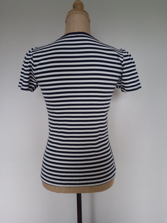 Tee-shirt en coton à rayures blanches et bleues. Porté une fois