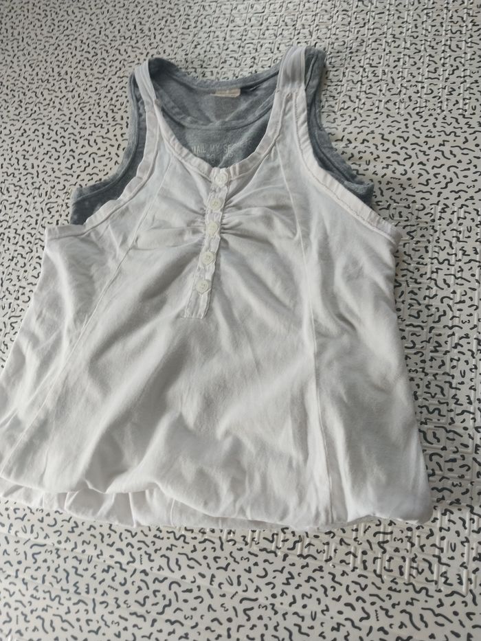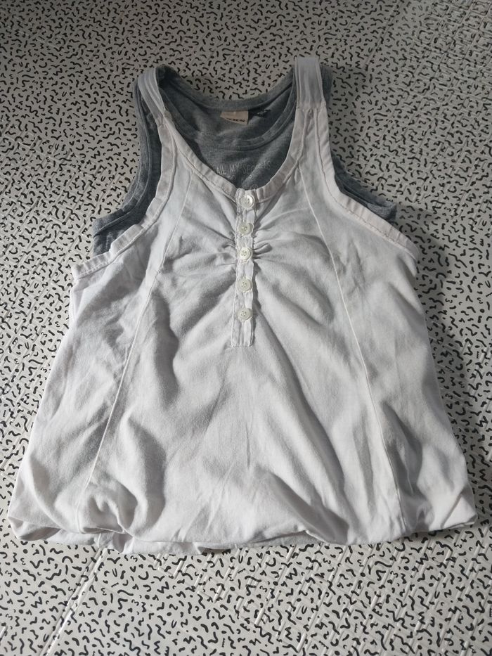 Débardeur IKKS original avec effet 2 en 1 : superposition d’un top gris chiné et d’un débardeur blanc boutonné. Détails soignés avec fronces et dos croisé. Tissu doux et confortable (100 % coton + viscose élastique). 🩶 Taille : 6 ans / 114 cm ✨ État : bon état général, peu porté 👕 Coupe : effet double top, léger et agréable pour l’été 💡 Parfait avec un short en jean ou une jupe pour un look chic décontracté ! #IKKS #fille6ans #debarbeurIKKS #modeenfant #lookete