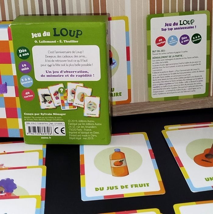 🎄 Très bon état C'est l'anniversaire de loup ! Des jeux, des cadeaux, des amis... A toi de retrouver tout ce qu'il faut pour que la fête soit la plus belle possible ! Un jeu d'observation, de mémoire et de rapidité !
