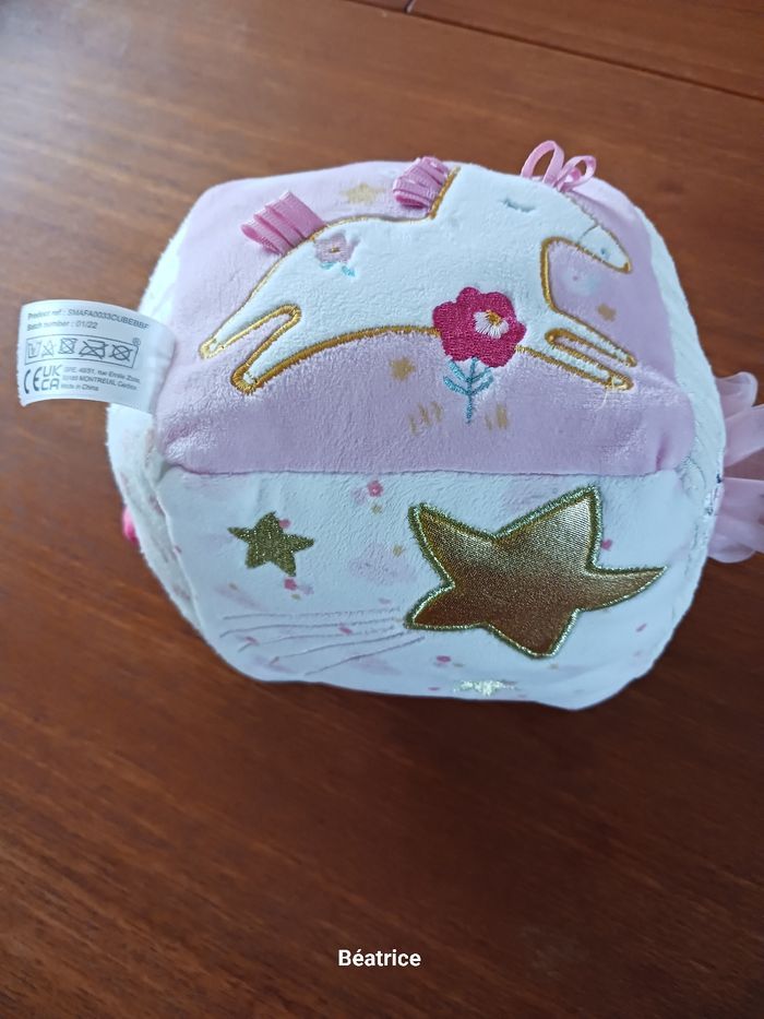 Petit cube très sympa, tout doux aux couleurs très douces. Très bon état sauf un peu rayé sûr miroir voir photos. Marque sergent major.