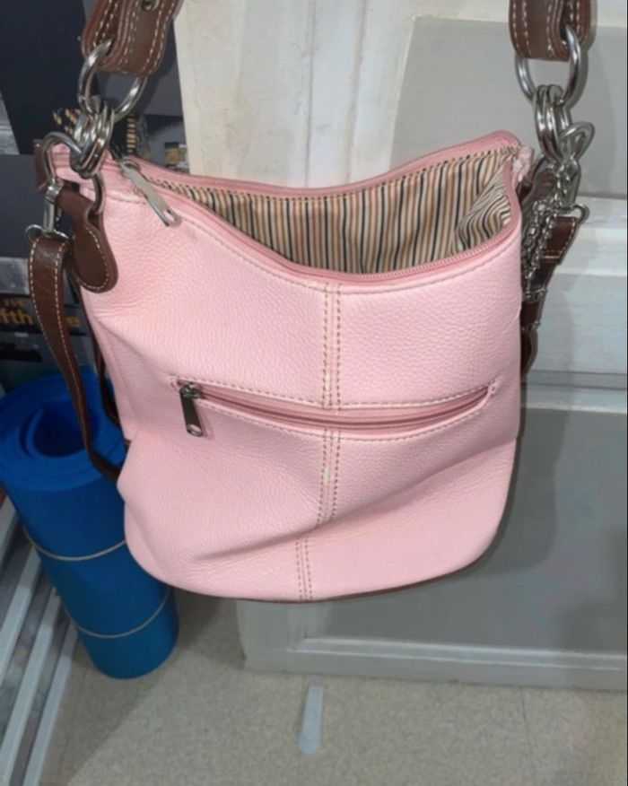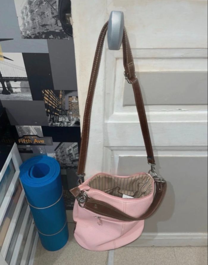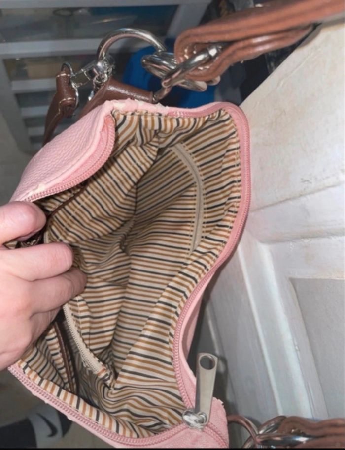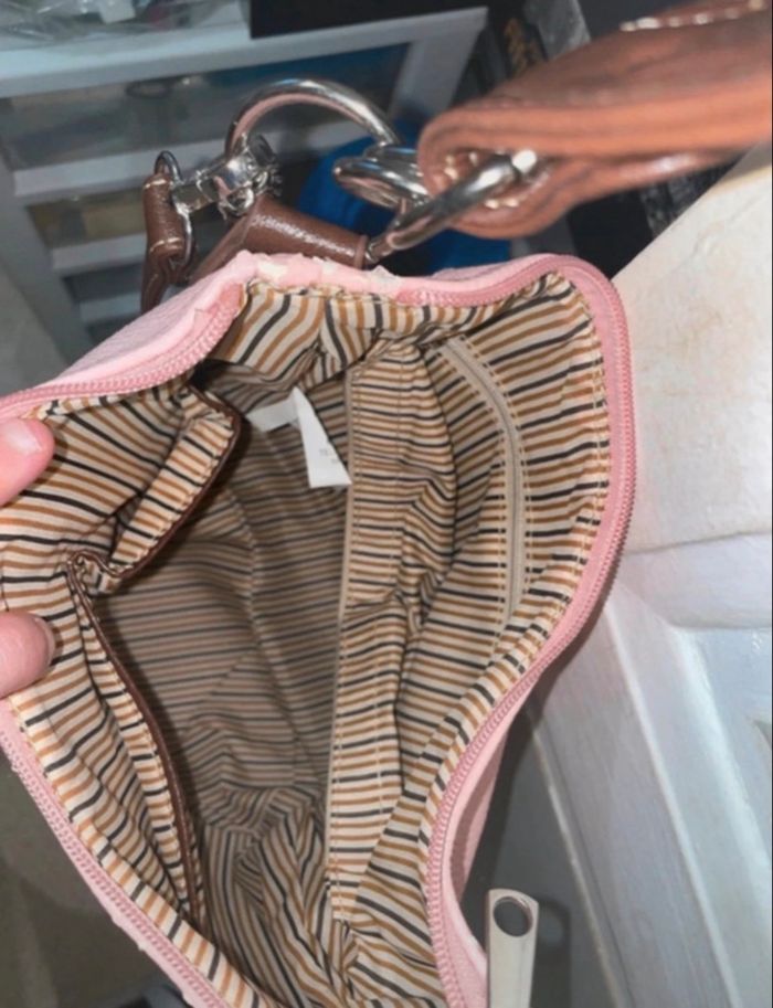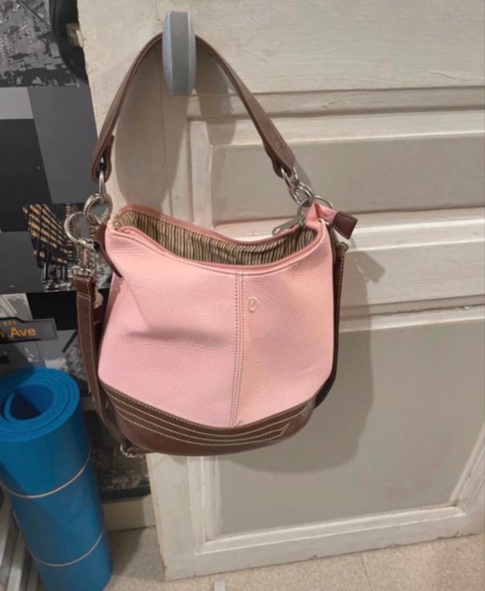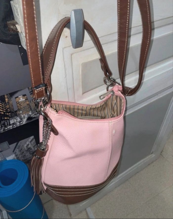 Sac à main Et anses bandoulière Rose et marron Trace d’usure Multi poche de rangement Similicuir