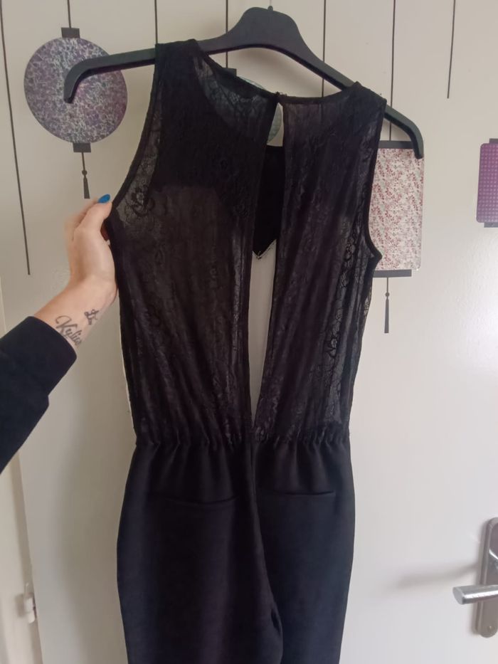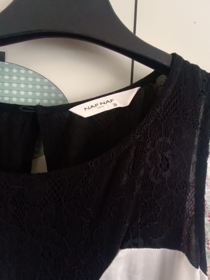 Combinaison noir et blanche en dentelle et ouverte sur le dos en taille 36 et de marque Naf Naf