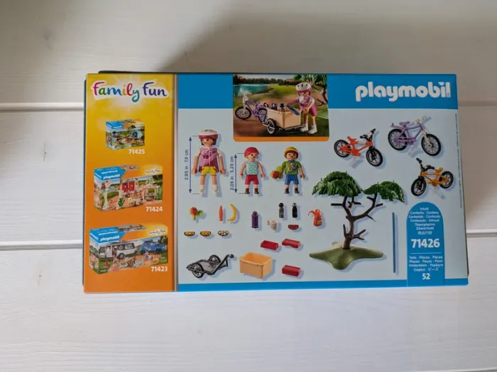 Produit neuf 71426 Playmobil family fun Ce set comprend un adulte, deux enfants, trois vélos dont 1 avec remorque et de nombreux accessoires.