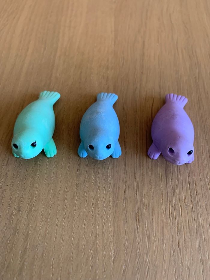 6 cerfs 3 phoques 2 lions 1 cheval 4 canards 1 écureuil rose qui se met au bout d’un crayon Il manque les bois des cerfs et un noeud papillon à l’un d’eux Envoi rapide et soigné sous protection