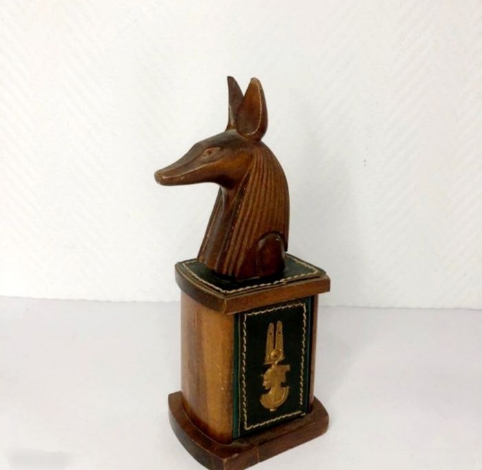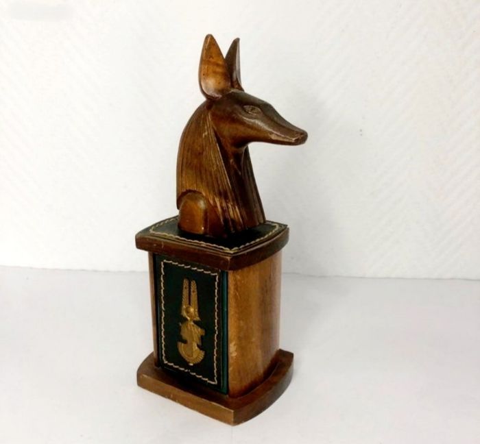 Figurine décorative représentant Anubis, la divinité égyptienne à tête de chacal. Peut servir de vide poche. - Type de produit: Figurine décorative - Style: Égyptien En très bon état