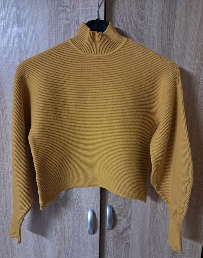 Pull court taille 38 moutarde Col montant Longueur de l'épaule jusqu'en bas 43 cms Étiquette de marque effacée