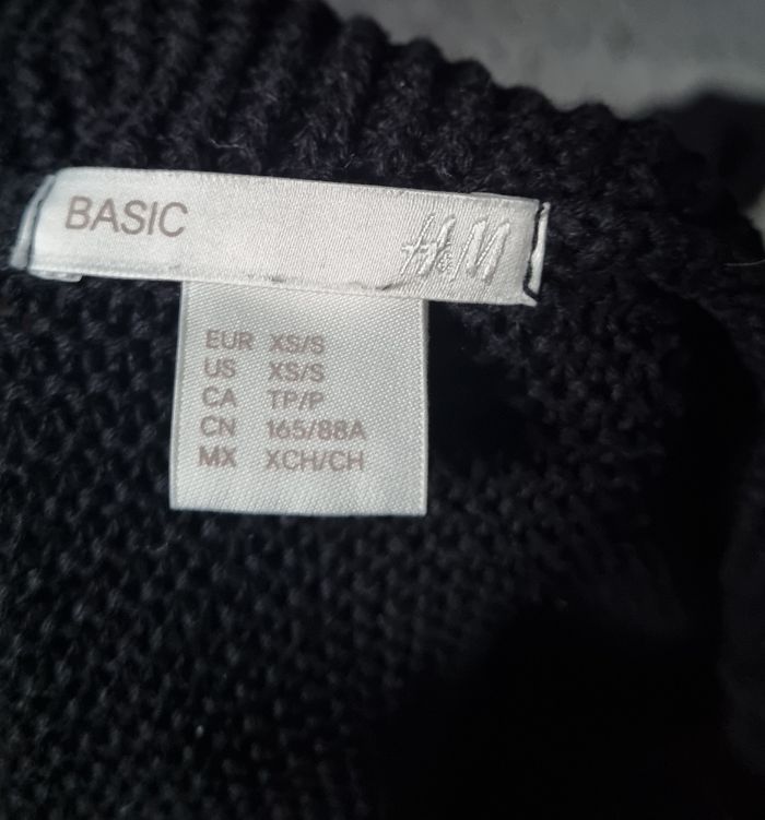Cardigan noir à manches longues, taille XS-S marque H&M, reste ouvert ne se ferme pas, longueur 92cm, largeur 53cm, longueur épaule à aisselle 20cm, largeur aisselle à aisselle 57cm, longueur manche 43cm.