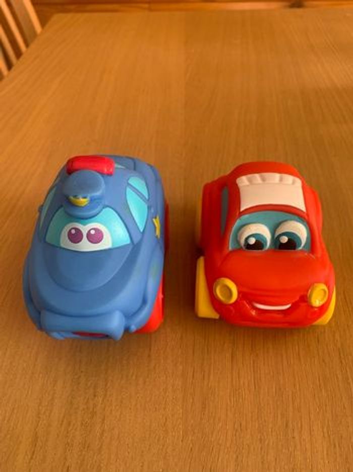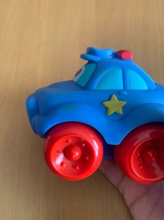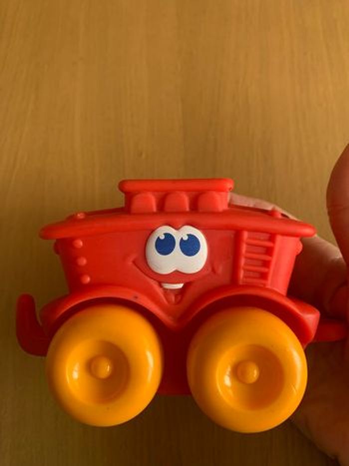 1 remorque de train ( plusieurs marques ( voir photos ) 1 voiture orange et violette ( petite trace sur le côté et en dessous, voir photos) 1 voiture de police ( petites traces sur le côté voir photo ) 1 voiture bleue ( manque un peu de couleur au niveau des phares arrières, voir photo) 1 voiture cygne ( manque de la couleur au bec , voir photo) 1 voiture rouge baby clementoni 2 petites voitures rouges 1 petite voiture jaune ( manque un peu de couleur , voir photo) Envoi rapide et soigné sous protection