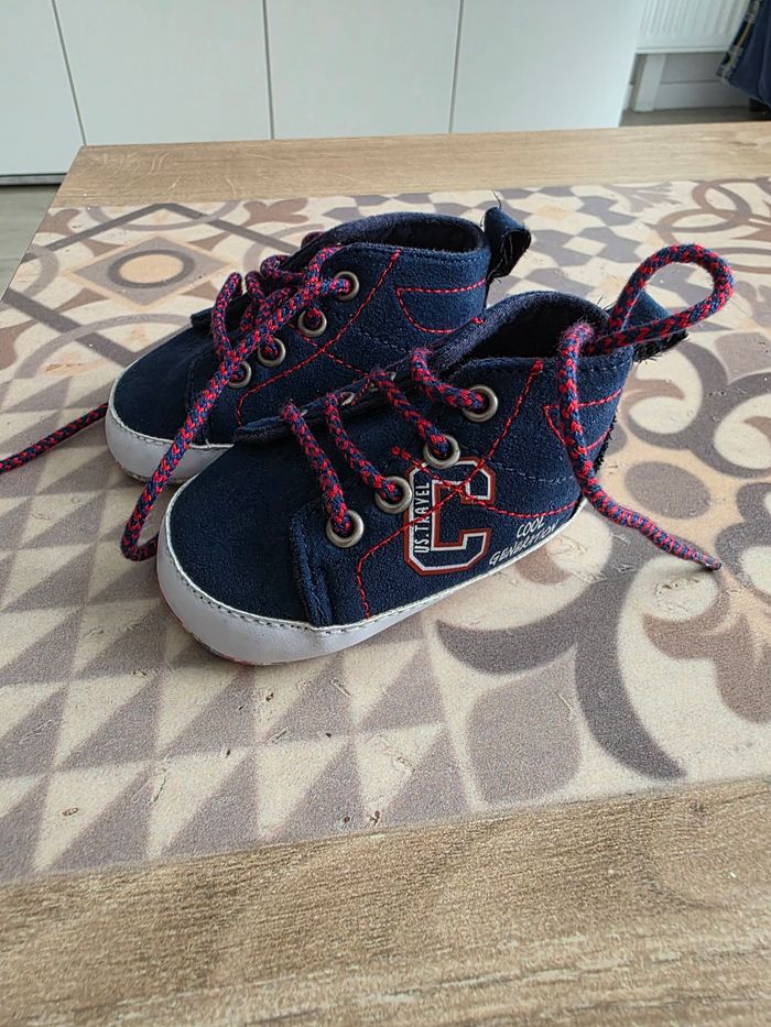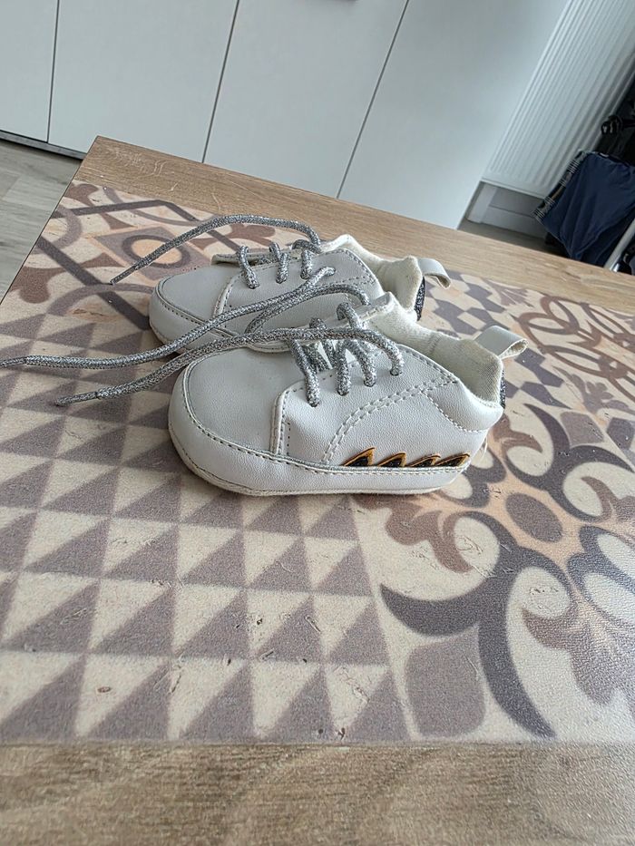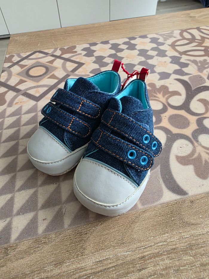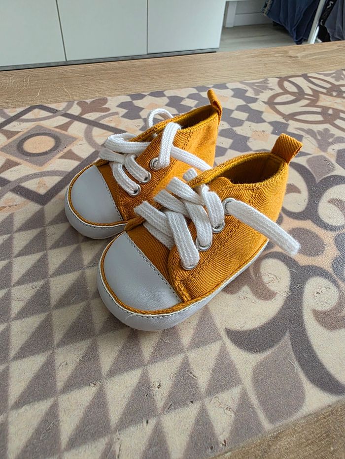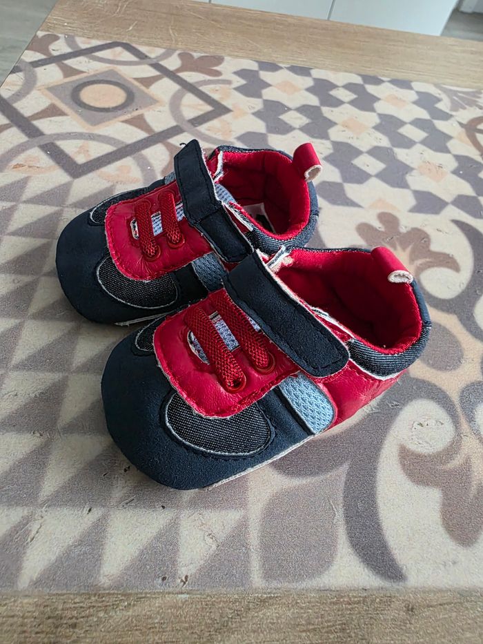 Vends un grand lot de 20 paires de chaussures et chaussons pour bébé garçon, couvrant les tailles 0 à 12 mois. Le lot comprend : Plusieurs paires de baskets (style Converse, montantes, à scratch...) Chaussons en cuir souple Chaussons peluche bien chauds Et d'autres modèles (voir photos) Idéal pour équiper bébé pour sa première année avec tous les styles (sortie, maison, cérémonie). Excellent état général, beaucoup de paires sont comme neuves. Prix pour le lot complet (20 paires) : 40 €