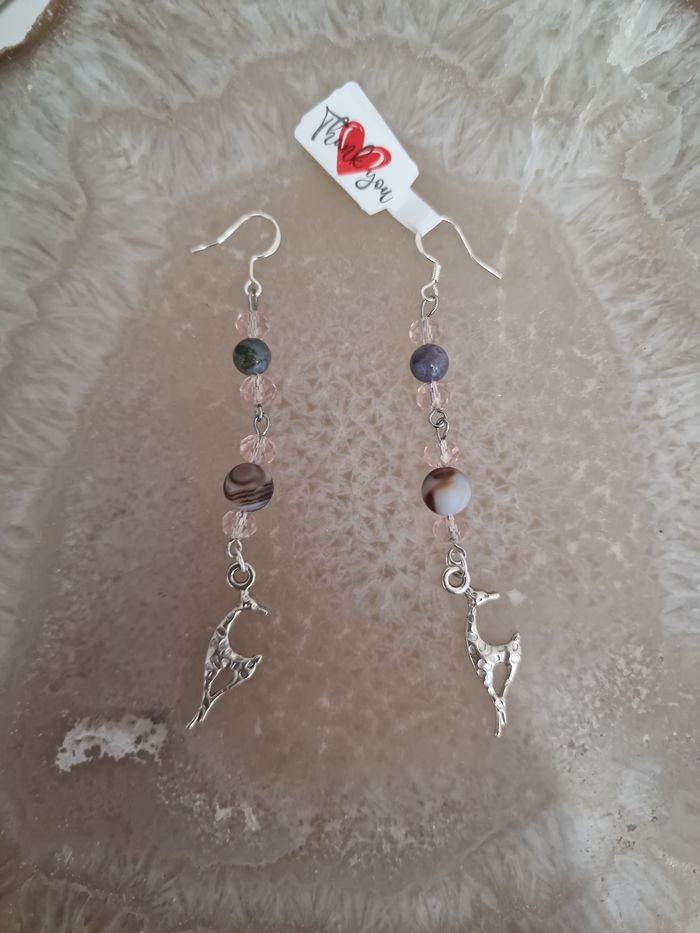 Boucles D'oreilles Girafes Acier Argenté Perles Agate Indienne Aventurine - photo numéro 9