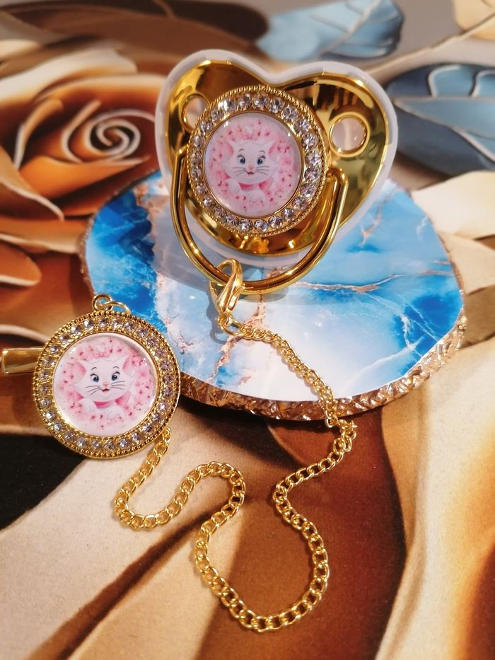 Sucette, tétine doré strass avec attache, marie des aristochat - photo numéro 1
