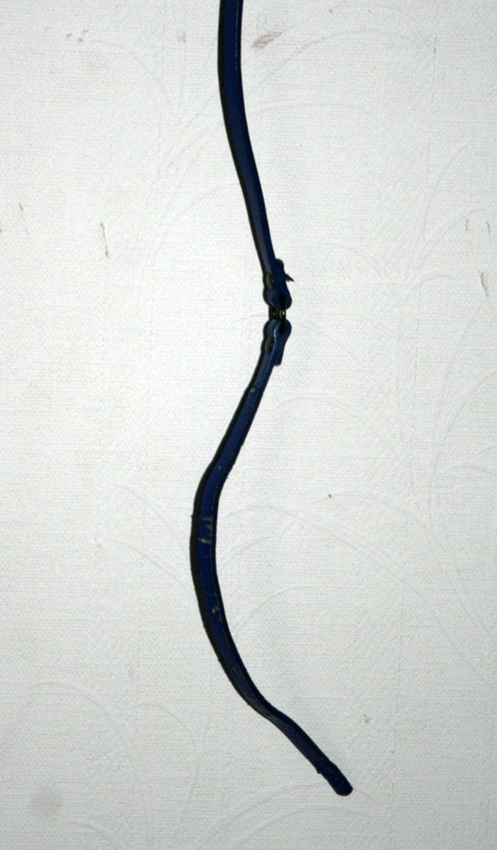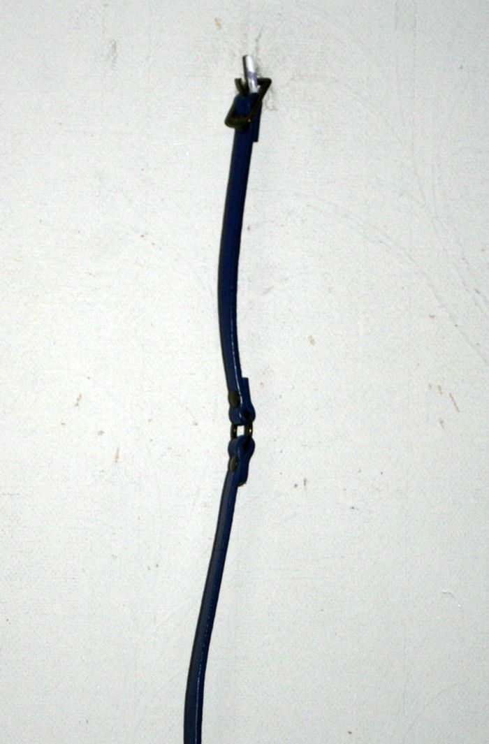 Ceinture bleue 85cm, 1er trou à 68cm et dernier trou à 80cm, revêtement abimé au niveau de la partie où il y a les trous, 20g
