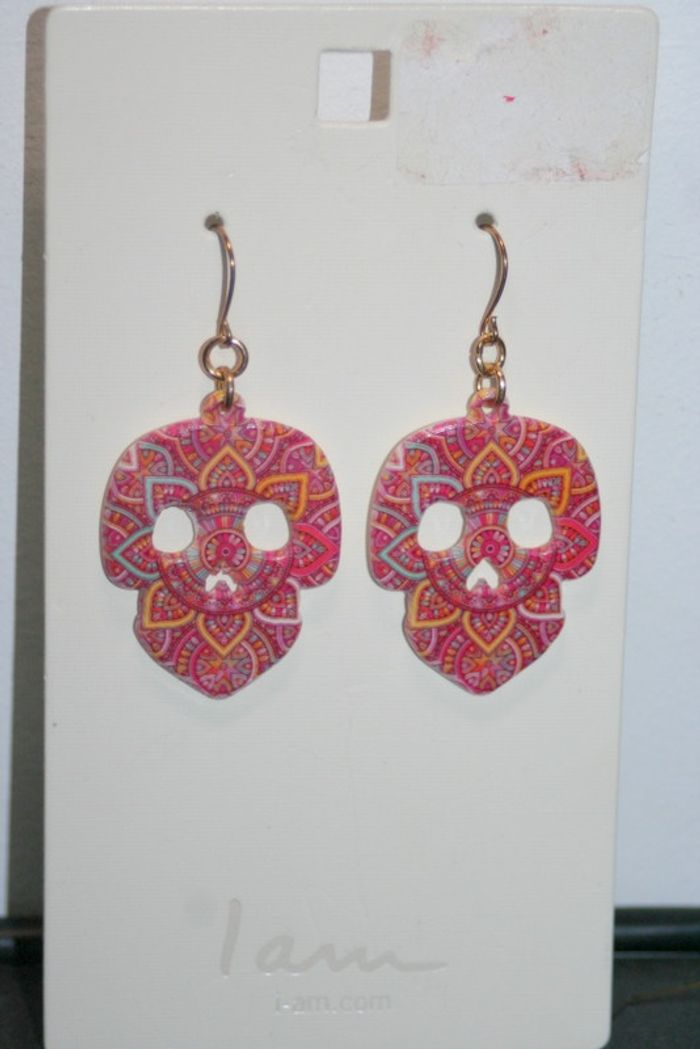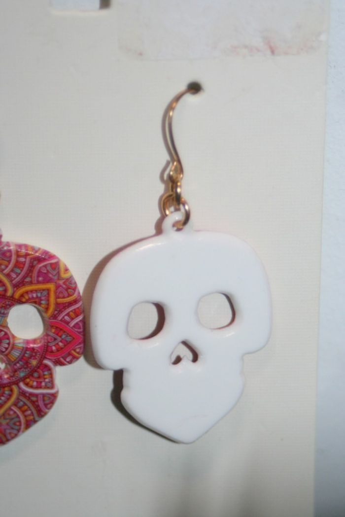 Boucles d'oreilles rose tête de mort 4cm de long - photo numéro 3