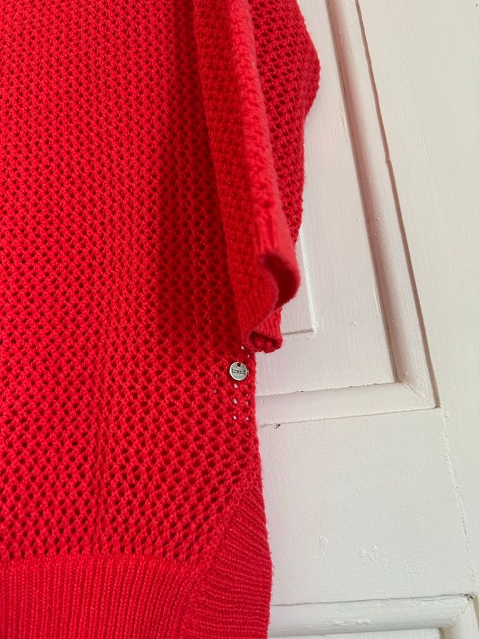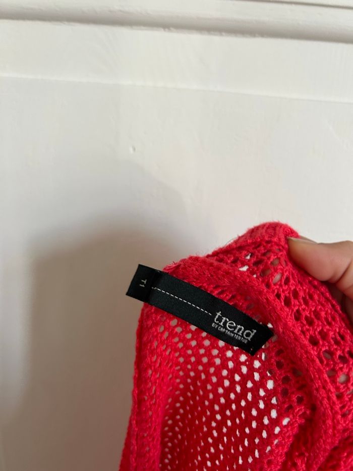 ❤️ Pull ajouré Trend by captain tortue – Taille L Pull léger Trend by captain tortue, couleur rouge vif 🔥, en maille ajourée respirante. Peut se porter aussi bien fermé façon pull qu’ouvert façon gilet, selon le style souhaité. ✨ Détails : • Marque : Trend by captain tortue • Taille : L • Couleur : rouge • Matière : maille ajourée extensible • Manches ¾ • Boutons à l’arrière (ou sur le devant selon le porté) • Coupe courte et fluide 💡 Idée look : parfait sur un débardeur blanc ou une robe d’été pour une touche colorée et rétro. 🕊️ État : très bon état, aucun trou ni accroc.