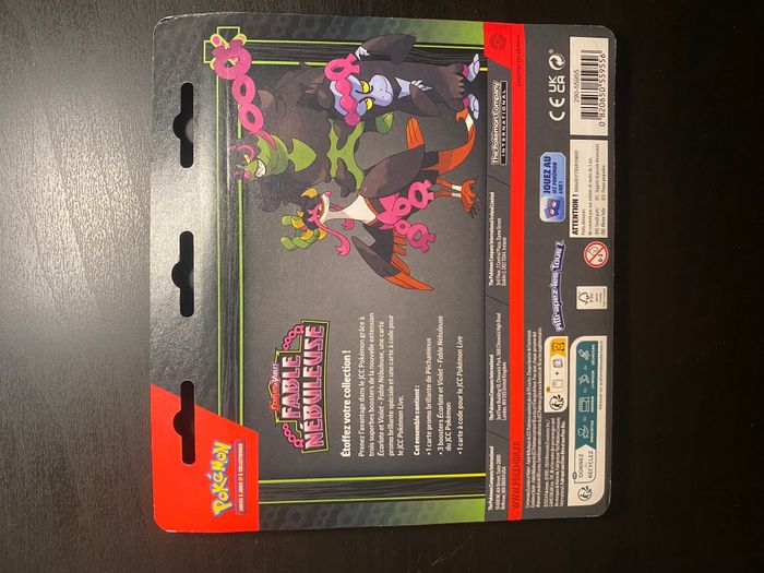Tripack Pokémon Fable Nébuleuse + Carte Promo Péchaminus – Neuf – VF Produit neuf sous blister, jamais ouvert, version française. Tripack officiel de la série Écarlate et Violet – Fable Nébuleuse (EV06.5) contenant : • 3 boosters scellés Fable Nébuleuse • 1 carte promo exclusive Péchaminus • 1 carte code pour le JCC Pokémon Live Envoi rapide et protégé avec soin (papier bulle + carton renforcé). Remise en main propre possible sur Bordeaux et alentours. N’hésitez pas à me contacter pour plus d’informations ou photos ! 🌷