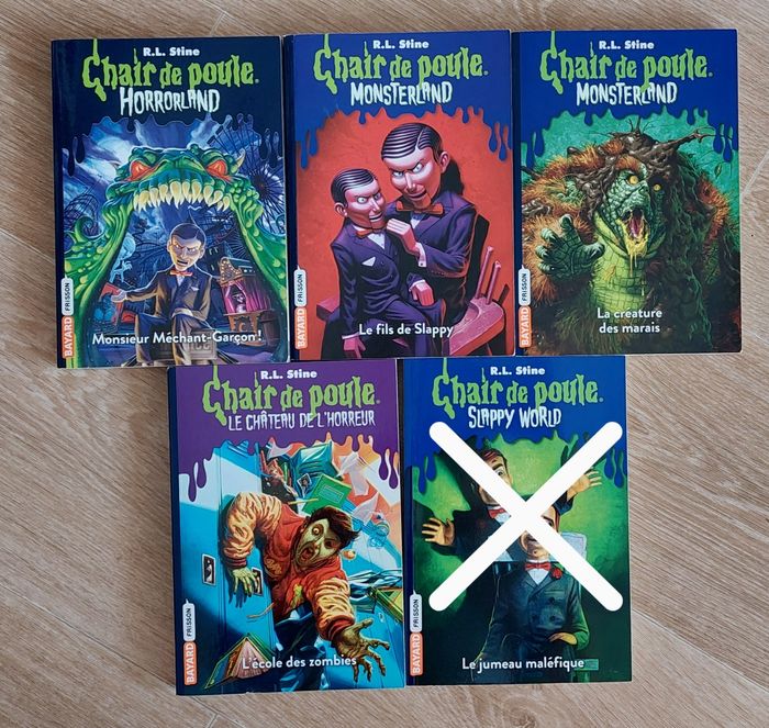 - Monsieur Méchant-Garçon (Horrorland) - Le fils de Slappy (Monsterland) - La créature des Marais (Monsterland) - L'école des zombies (Le château de l'horreur) 12€ le lot de 4 Livres très bon état Ou 3€ l'unité