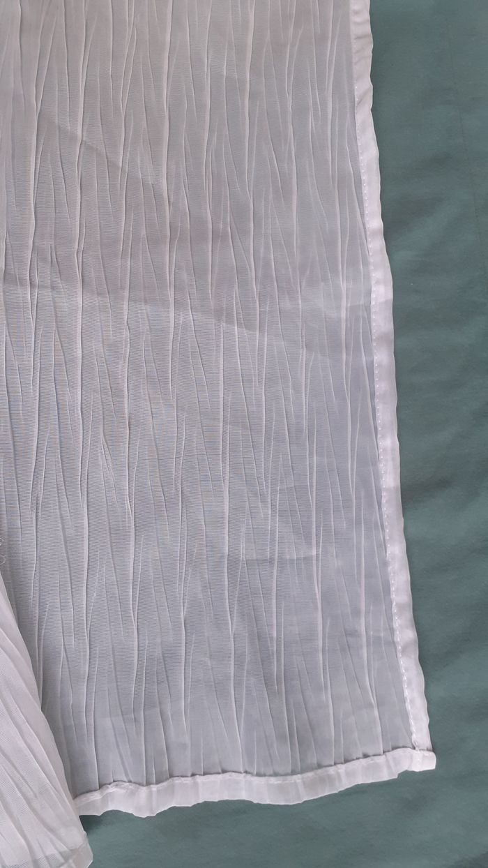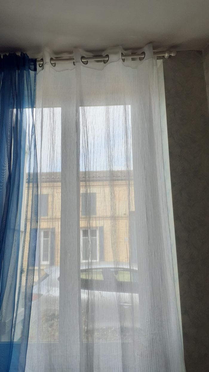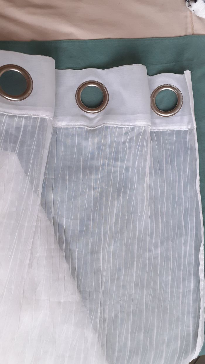 Vends une paire de rideaux couleur blanc, tout plissés, avec anneaux dorés, 140 de large sur 238 cm de hauteur.