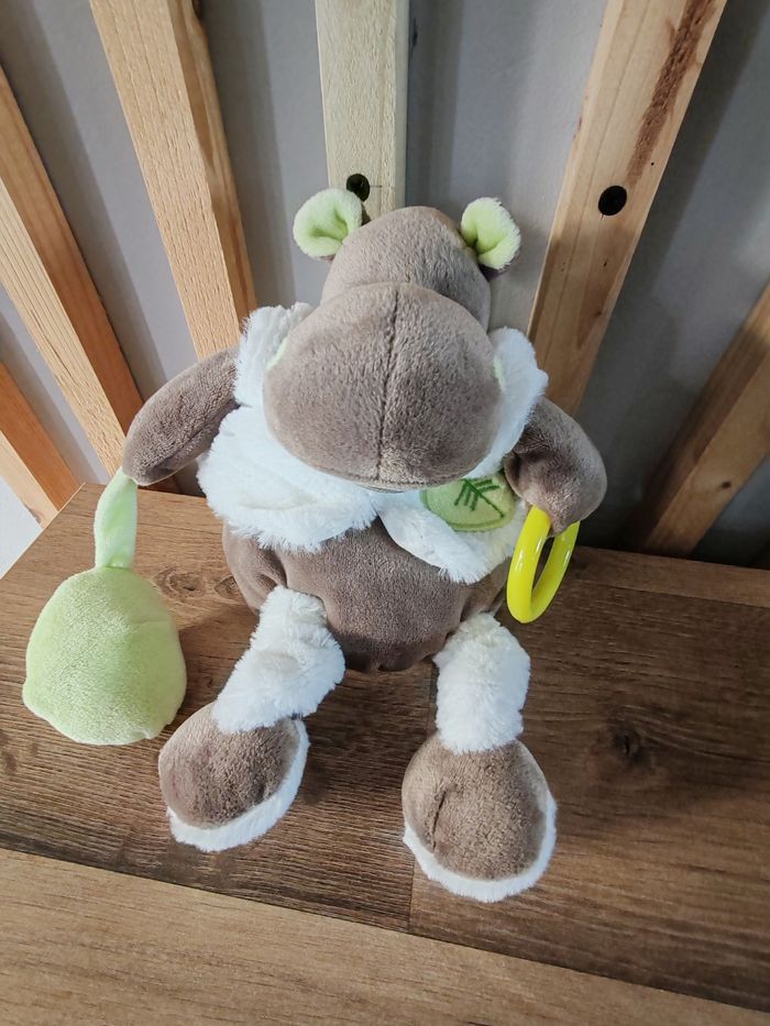 Doudou Hippopotame Activité Marron Blanc Bazile Feuille BABY NAT’ 23 cm environ Tbe Étiquette marque présente 9.90 euros Envoi en relais