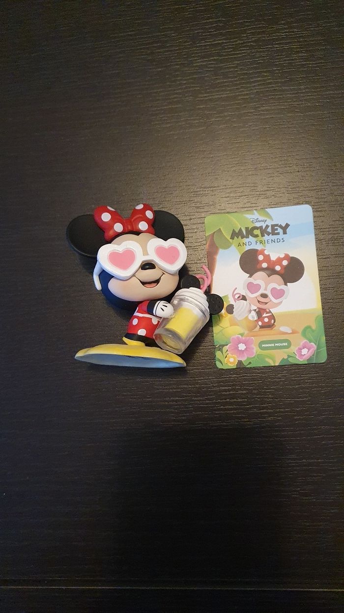 Je vends cette figurine Minnie en parfait état. - Type de produit : Figurine - Marque : Disney - Personnage : Minnie - Âge recommandé : De 4 à 6 ans - Accessoires inclus : Lunettes de soleil en forme de cœur État neuf. N'hésitez pas à me contacter pour plus d'informations !