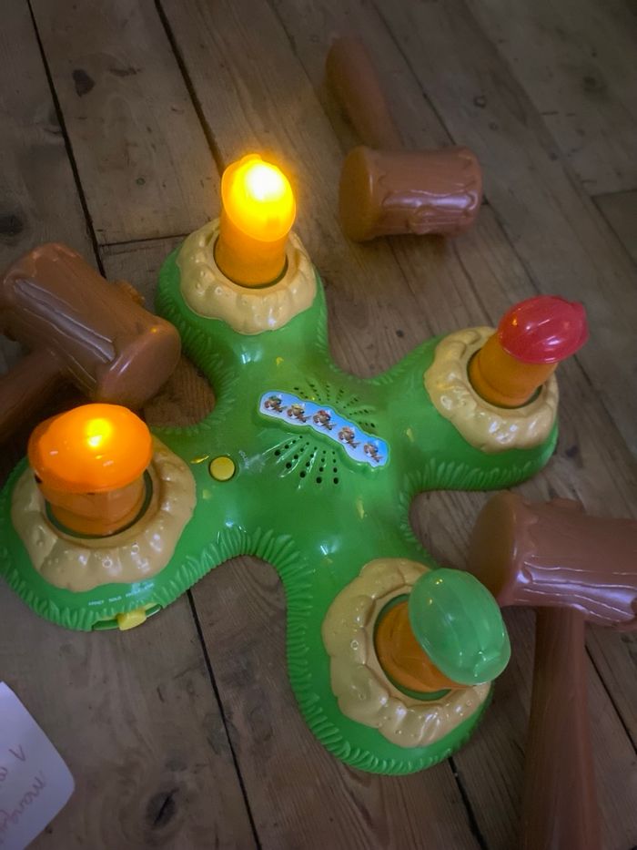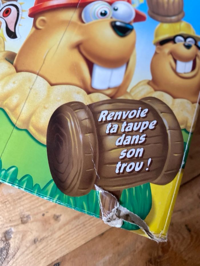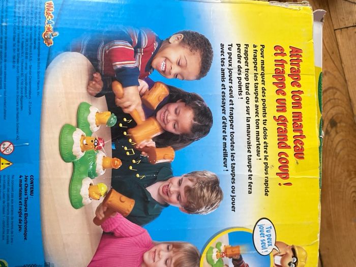 Jeu Hasbro chass taupes dès 4 ans Très bon état sauf qu'il manque 1 marteau pas gênant pour jouer jusqu'à 3 joueurs. L'enfant pourrait aussi jouer seul.