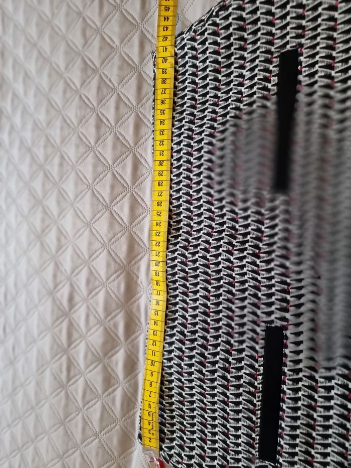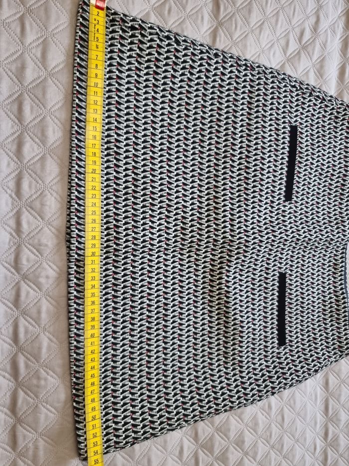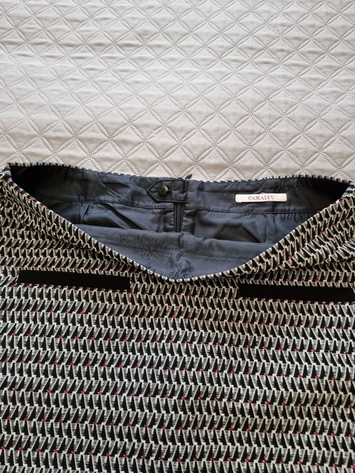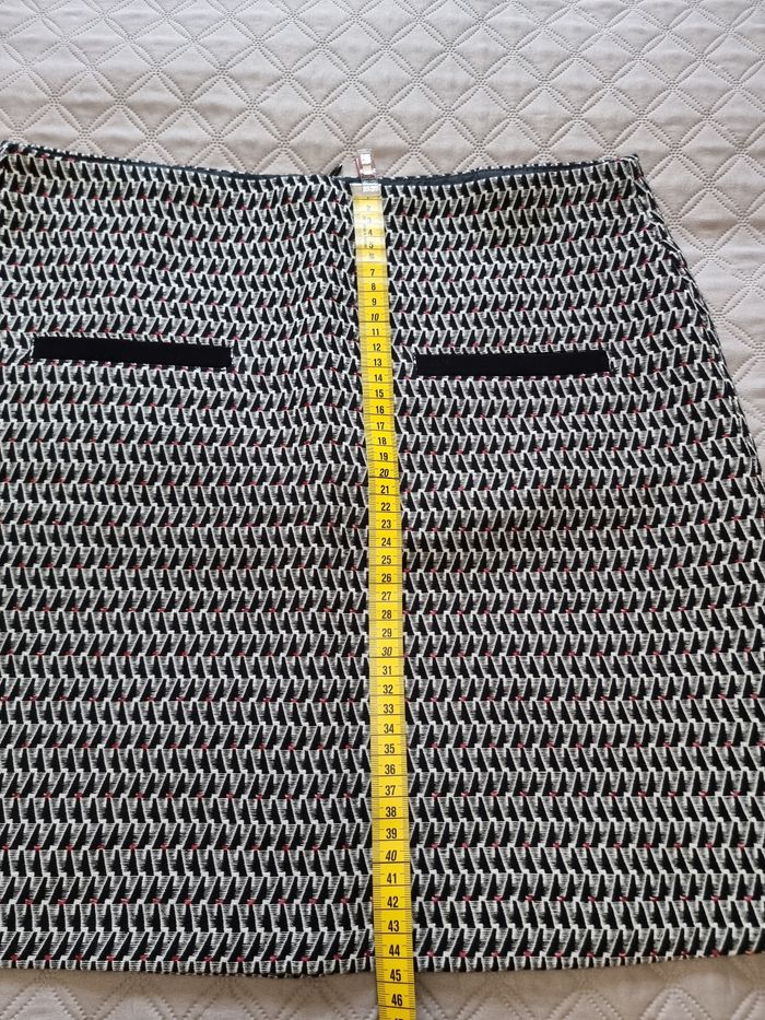 Jolie petite jupe camaieu noire à chevrons rouges, fausses poches sur le devant. État irréprochable