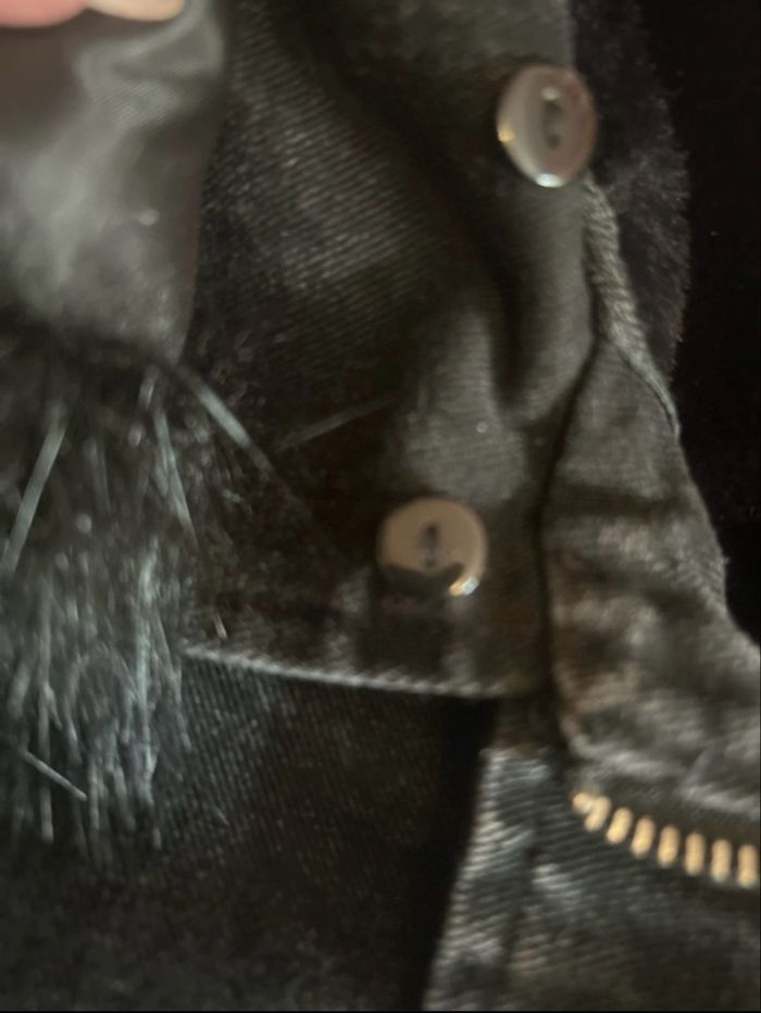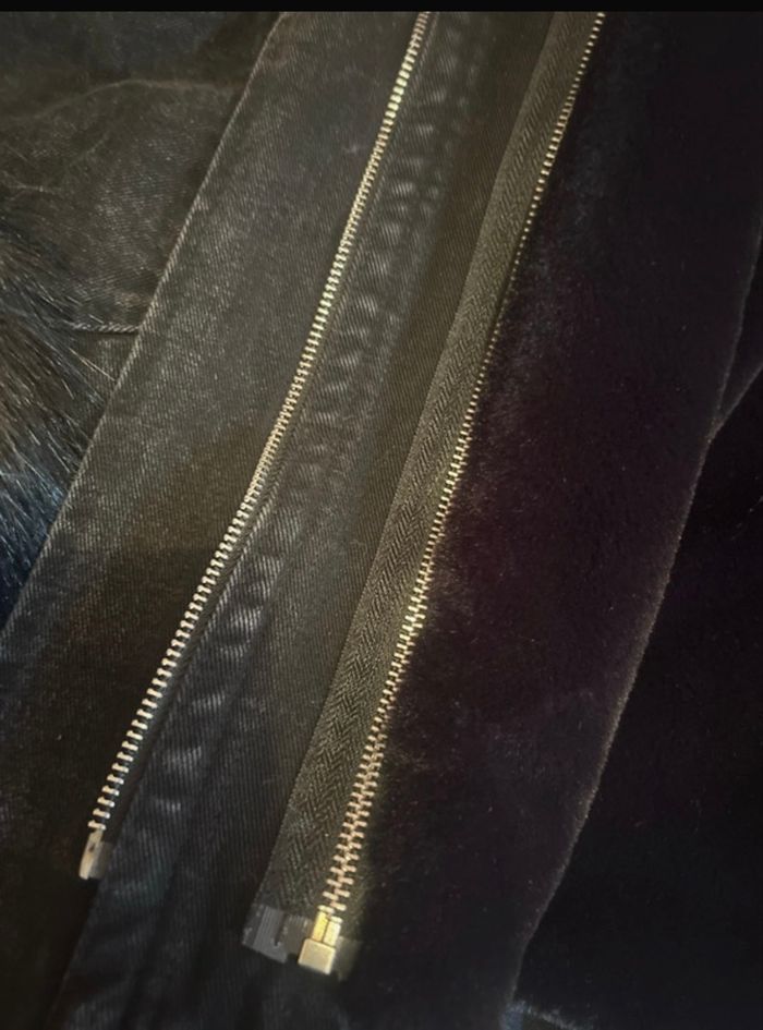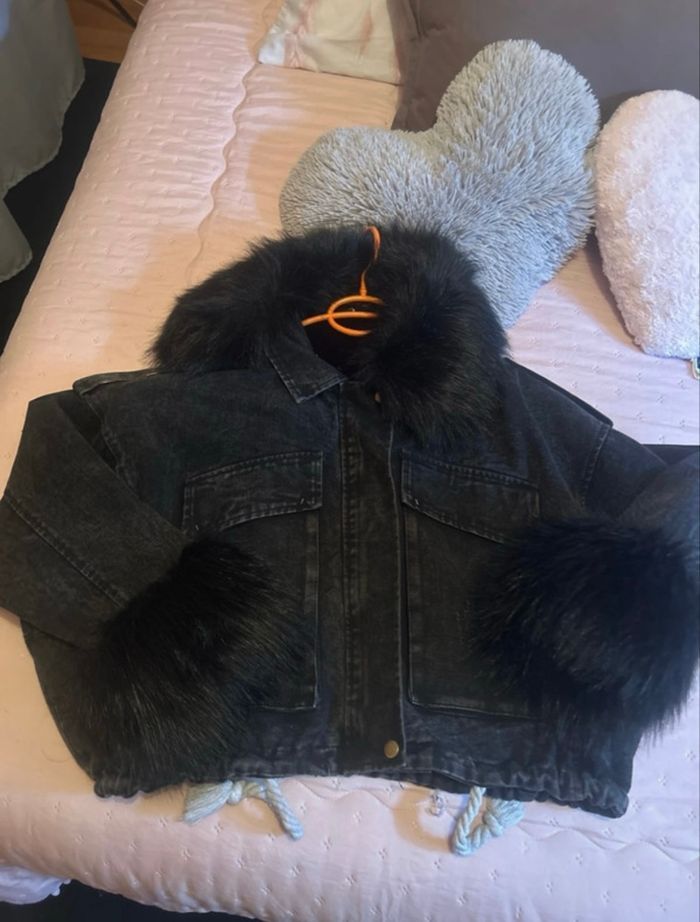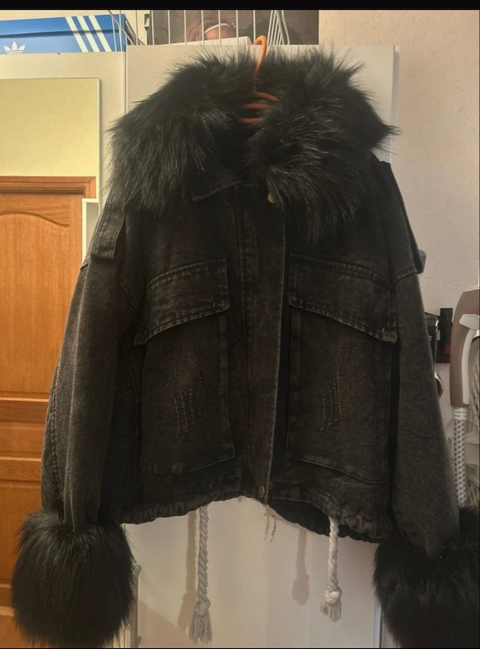 Beastie jean oversize Toute doublé moumoute intérieur Possible d’enlever la moumoute grâce aux fermetures Fourrures col et manche qui se retire aussi avec des élastique Porté deux fois Manque juste un petit élastique au col de la fourrure Lien de serrage en bas Taille unique 38/44 Payer 80 euros