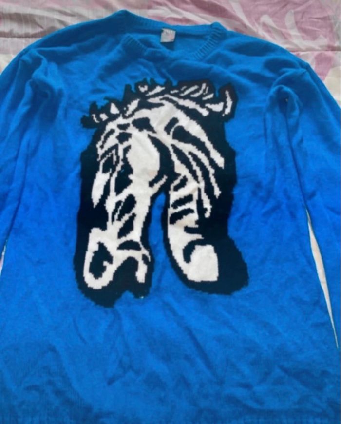 Pull Bleu avec zèbre Taille M/L Girls Confidential Peu porté