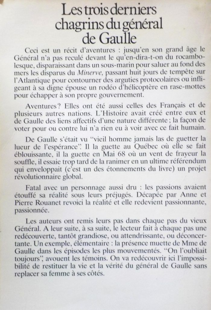 LES TROIS DERNIERS CHAGRINS DU GENERAL DE GAULLE par Anne et Pierre ROUANET Ed. Grasset Bon état Résumé en photo n°2