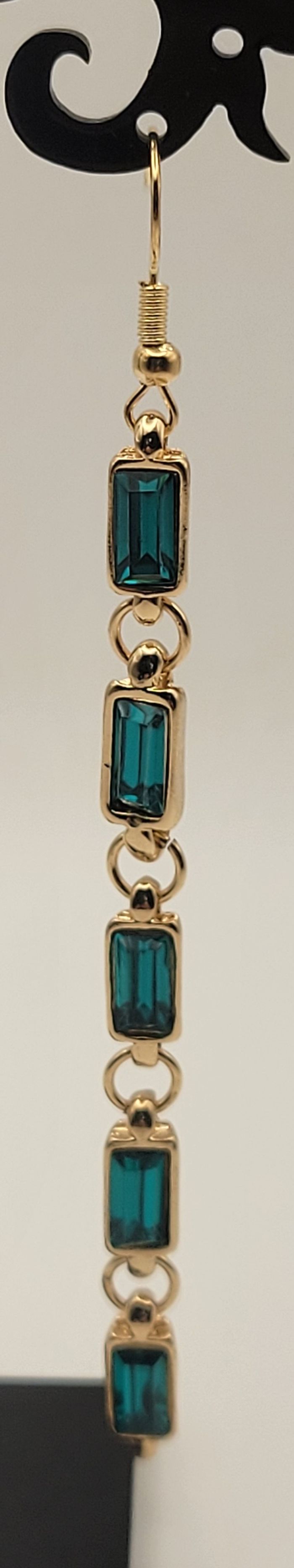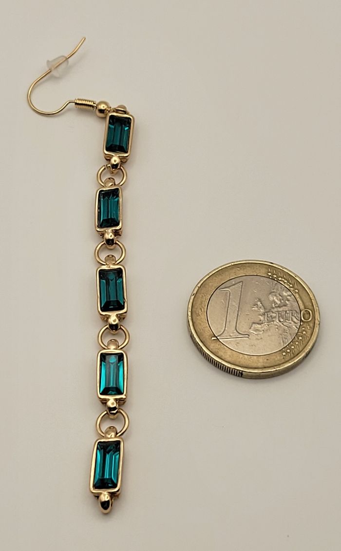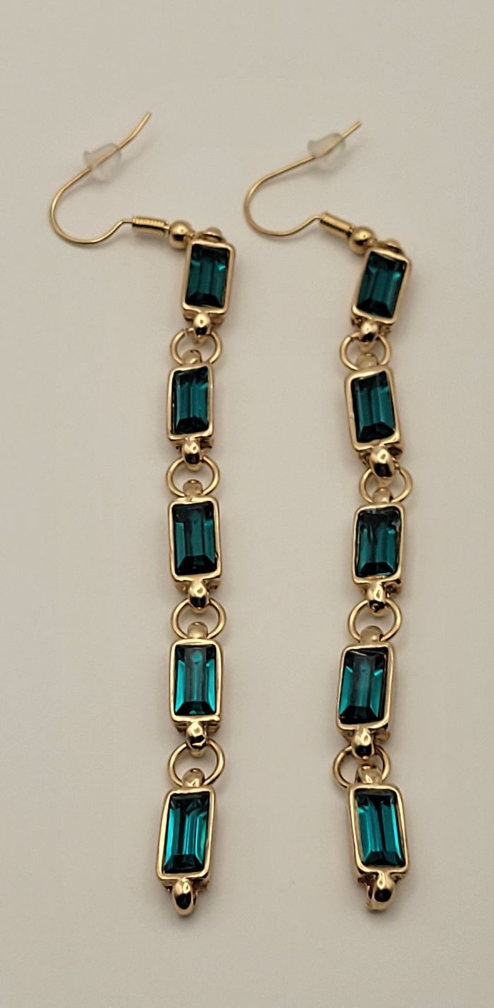 BOUCLES D'OREILLES PENDANTES LONGILIGNE STRASS VERT FONCE ! NEUVE ! - photo numéro 3