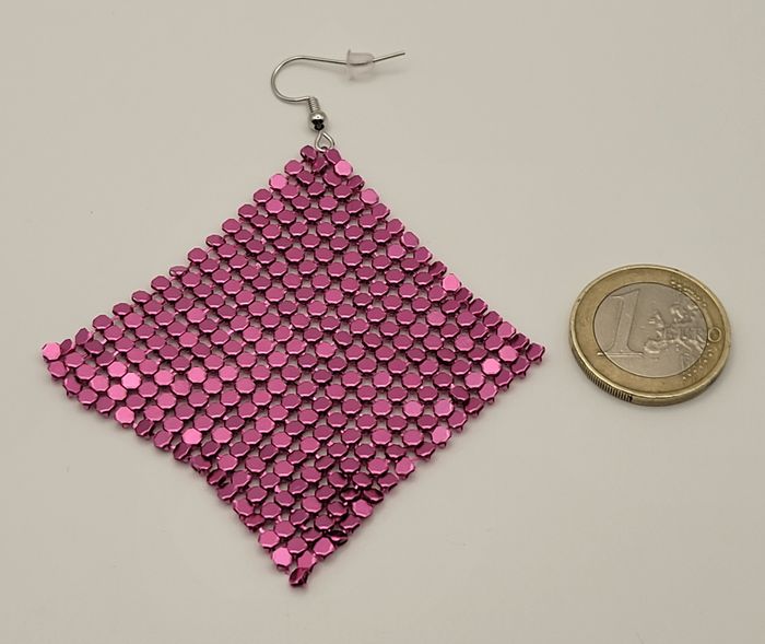 BOUCLES D'OREILLES DISCO SEQUIN ROSE PAILLETTES ANNEE 80 , FETES ! NEUF ! - photo numéro 3