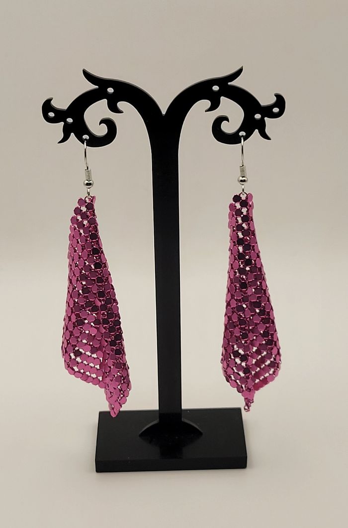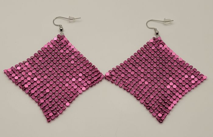 BOUCLES D'OREILLES DISCO SEQUIN ROSE PAILLETTES ANNEE 80 , FETES ! NEUF ! - photo numéro 1