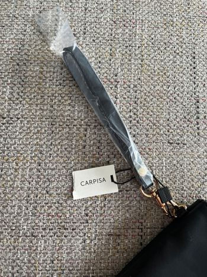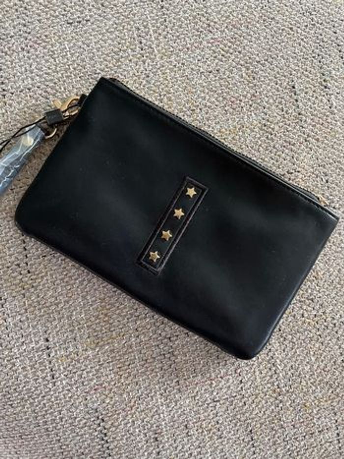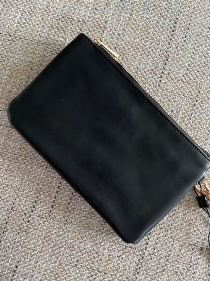 Neuve, pochette noire et dorée en similicuir, sangle amovible vous pouvez l’utiliser en porte monnaie ou portefeuille , en soirée en pochette on y loge facilement un portable et une carte bancaire , dimensions : longueur : 20 Cm, Hauteur 12 Cm, un accessoire à offrir, envoi rapide, n’hésitez pas à me contacter pour plus de renseignements, merci