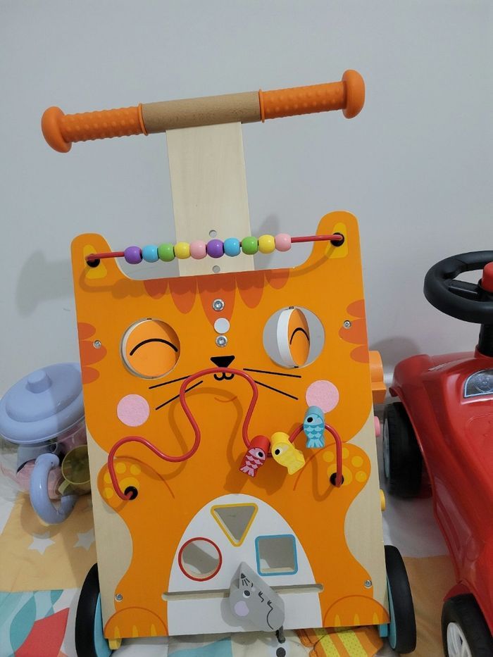 Je vend ce trotteur (chariot multiactivite) de la marque Janod en très bon état,très peu utilisé et uniquement à l intérieur. Frein et poignée ajustable.