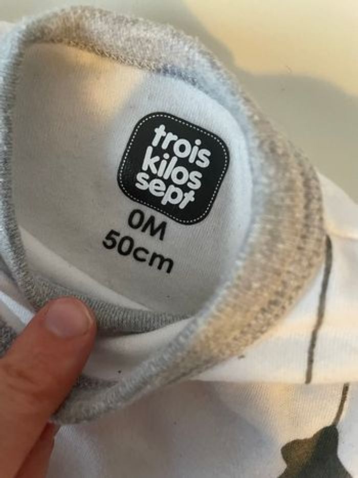 Ensemble naissance contenant 1 body, 1 bonnet, 1 bavoir et 1 paire de chaussons. Le tout en excellent état.