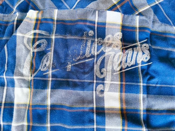 Chemise Complices Jeans pour Garçon Taille : 10 ans. Marque : Complices Jeans (marque spécialisée dans le style vintage/détendu). Couleurs : Carbone dominant bleu roi / marine avec des lignes blanches, grises et marron/ocre. Matière : 35% Coton / 65% Polyester État : bon état général. Le motif/logo au dos et usé (voir photo) Aucun trou, pas de tache. Détails : Coupe droite. Manches longues avec boutons aux poignets. Poche poitrine avec petit logo brodé. Style "Bûcheron" / Western / Vintage. #chemisecarreaux #chemiseenfant #chemisegarçon10ans #ComplicesJeans #stylebucheron #vintageenfant #chemisebleue #flanelle #surchemise #vetementsoccasion #cotonpolyester #JojowDress