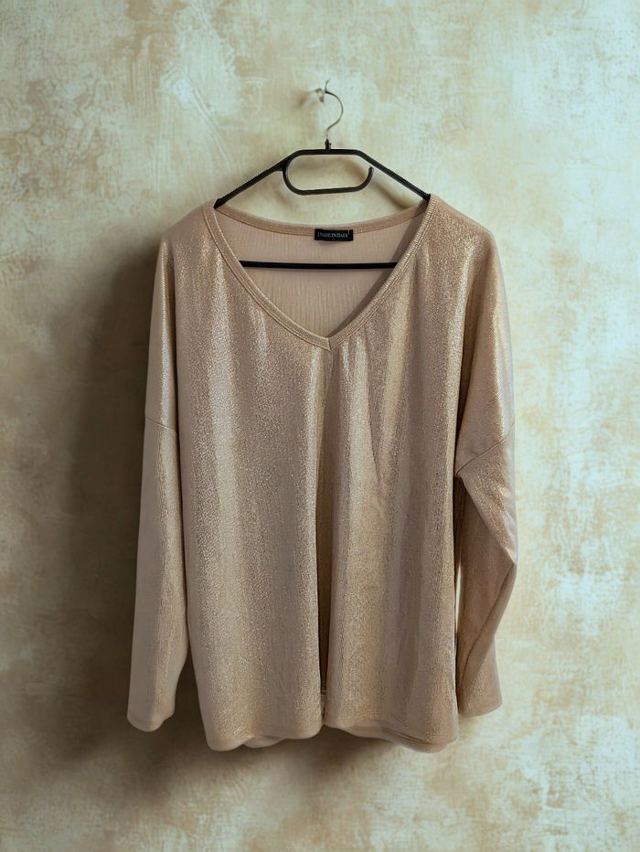 Jolie blouse à manches longues pailletée de couleur doré. Marque Made in Italy Taille Unique Peut convenir à une taille M, L voir XL