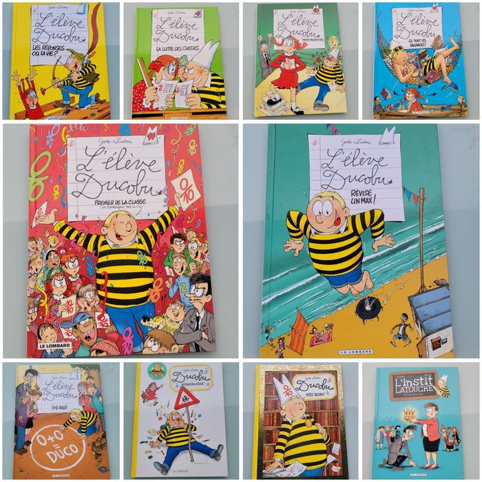 10 BD L'ÉLÈVE DUCOBU Tome 3 : Les Réponses ou la vie? Tome 4 : La Lutte des classes Tome 10 : Miss dix sur dix Tome 13 : Ça sent les vacances Tome 14 : Premier de la classe (en commençant par la fin) Tome 18 : Révisé un Max! Tome 20 : 0+0 = Duco Tome 24 : Attention École ! Tome 26 : Votez Ducobu! Quelques petites traces d'usure sur certaines couvertures mais en très bon état général