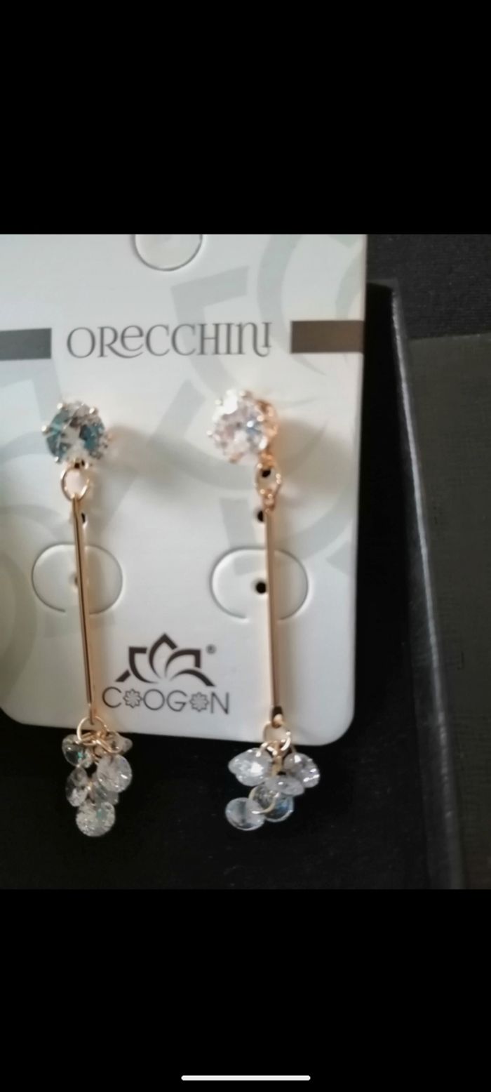 Magnifique paire de boucles en plaqué or serti de Zirconiums. - photo numéro 2