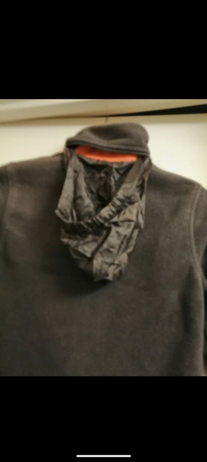 Veste polaire bien épaisse et chaude. En bon état ( une tâche de peinture dûe aux activités loisirs créatifs) . Ça ne gêne pas à mon sens.