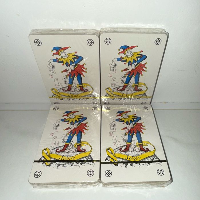 Lot de 4 jeux de 32 cartes. Neuf sous blister. Idéal pour jouer au poker, rami, belote, bataille, bridge, tarot, casino etc…
