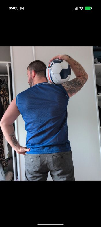 T-shirt uni dégradé bleu & blanc, poche sur le devant, en très bon état, peu porté, aucun défaut à signaler