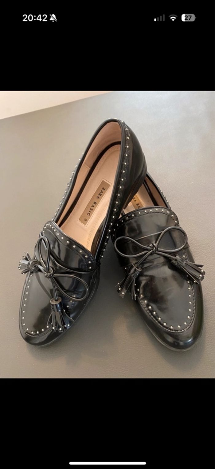 Mocassin Zara noirs brillants pointure  38 - photo numéro 1