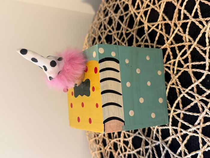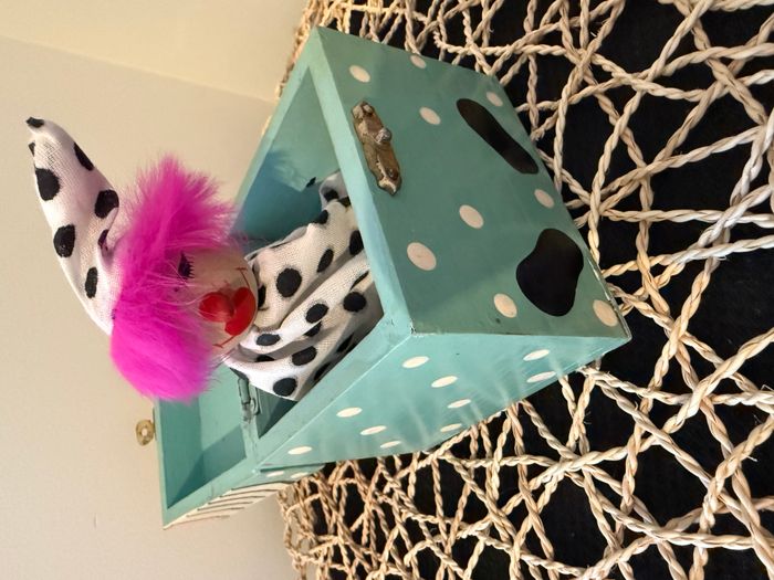 Clown vintage dans la boîte - Clown Jack-in-the-Box des années 1980 - Bois peint - photo numéro 1
