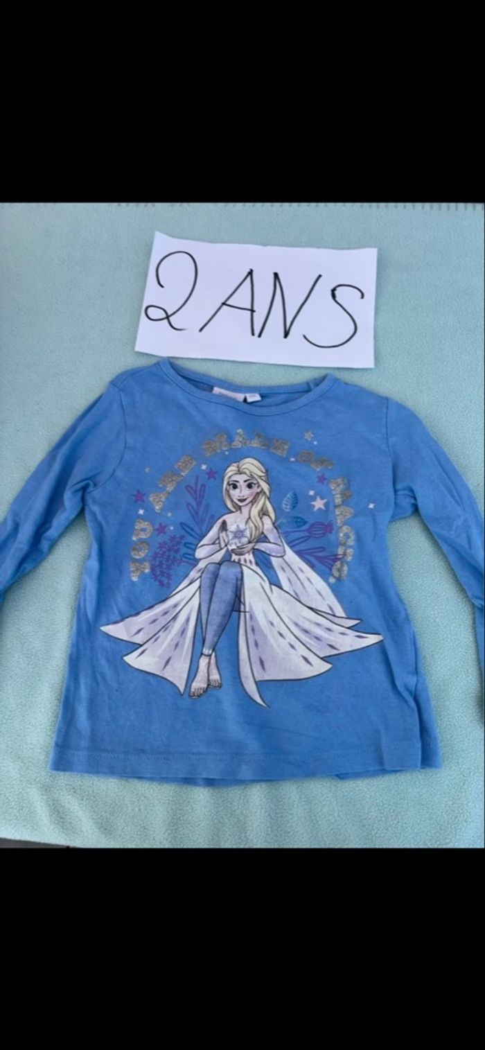 👕 T-shirt Reine des Neiges – 2 ans Adorable t-shirt bleu à manches longues avec motif Elsa ❄️ Taille : 2 ans État : Bon état 👍 Parfait pour les petites fans de la Reine des Neiges 💙 💰 Prix : 2 € #enfant #fille #disney #reinedesneiges #elsa #vetementbebe