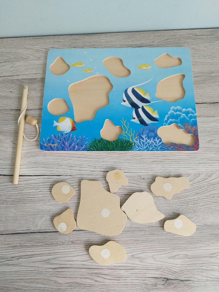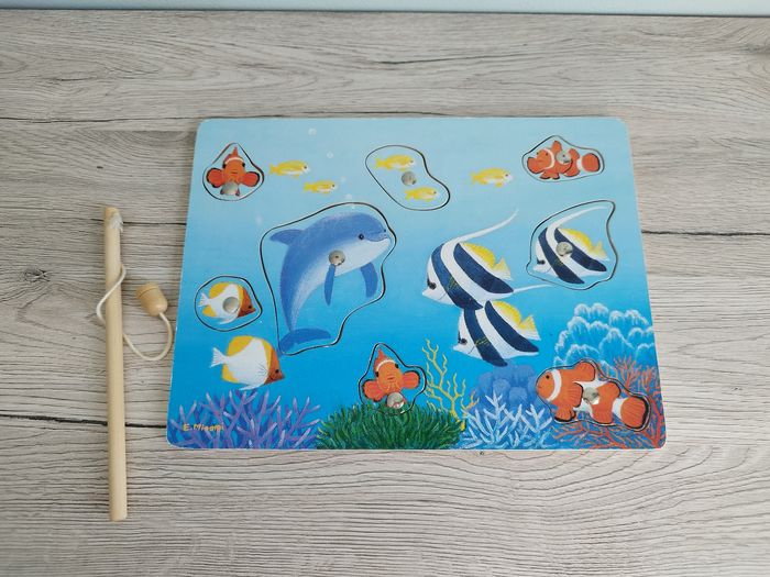 Jeu de pêche à la ligne avec une canne aimantée theme marin ( poisson dauphin...) Maison non-fumeur et sans animaux #melissarnaudjouet #melissarnaudjouetbois #melissarnaud #cadeaudenoel