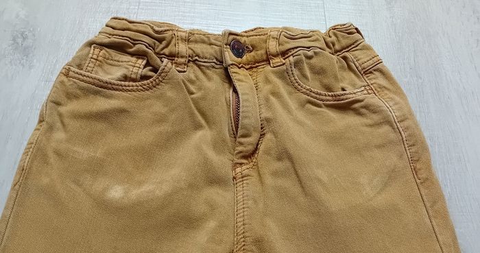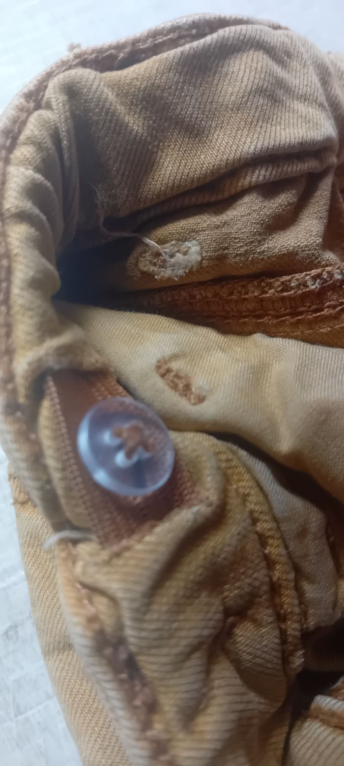Une petite tâche et un genoux un peu abîmé. Réglable à la taille.