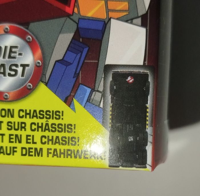 Diecast 1/32. Cross Over Transformers/Gohsbusters/SOS Fantômes Taille de la boîte 15cmX7.5X7.5 Le robot est un présenté en bas relief sur le châssis, Corgi Toys le faisait souvent pour ceux qui s'en rappelleront.