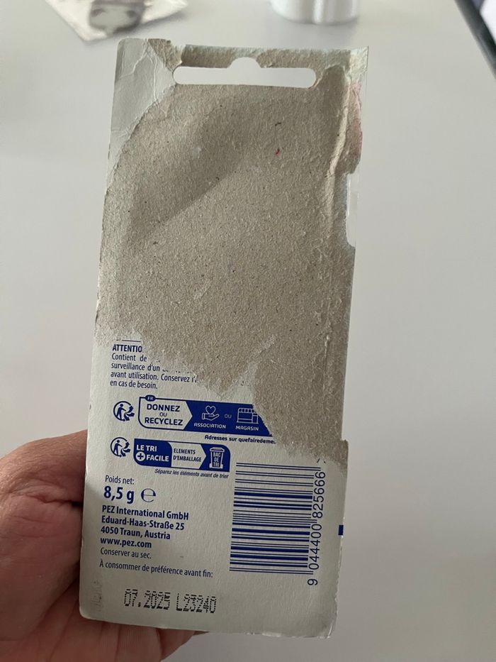 À vendre Pez Iron Man neuf jamais ouvert, voir photo emballage abîmer , date bonne jusqu’a Juillet 2025 ne pas manger les bonbons.